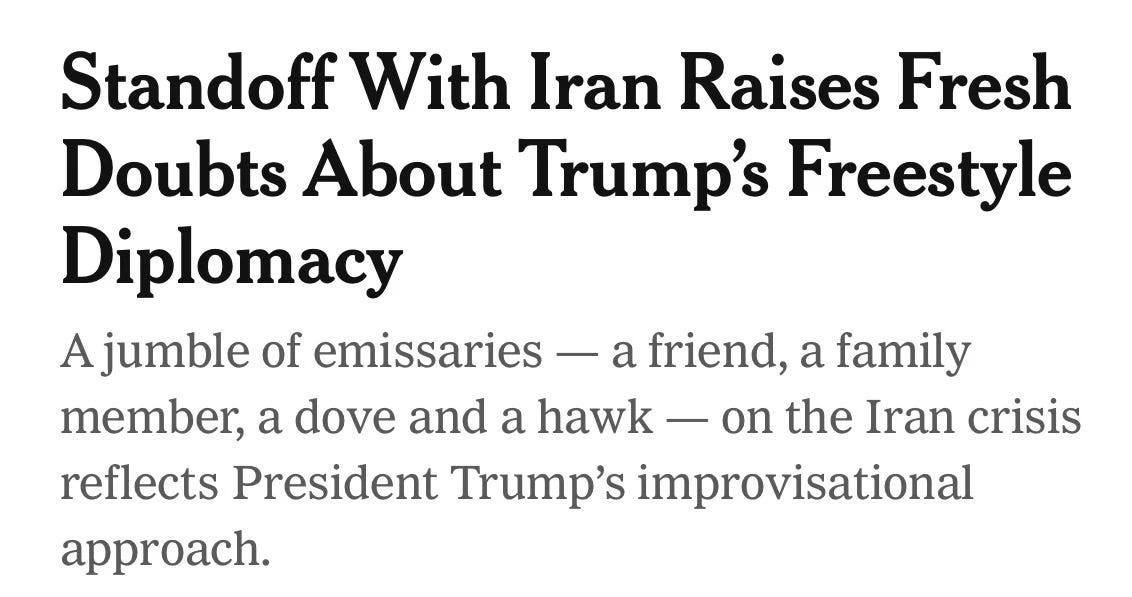 And double thanks for continuing to shed light on The NY Times' continuing abdication of journalism to benefit Trump. Every once in a while, they actually "commit a journalism" as Jeff Tiedrich puts it, but then they negate it with this type of sanewashing. Trump is "free styling" and "improvising"? He's spewing incoherent nonsense about even more incoherent and inconsistent policies. And I'm still seething about The NY Times' weird decision about two months ago to quote a piece of speech by Alexandria Ocasio-Cortez, leaving in all the "ums" and pauses, something I've never done in my 40 years as a journalist interviewing tons of incoherent rock musicians, because that's just not what you do for the benefit of readers. But they have virtually never reported a Trump quote verbatim, leaving in his mid-sentence digressions, his odd word insertions, his misnomers and gaffes, and his flights of completely impenetrable nonsense. Their sanewashing constitutes journalistic malpractice.