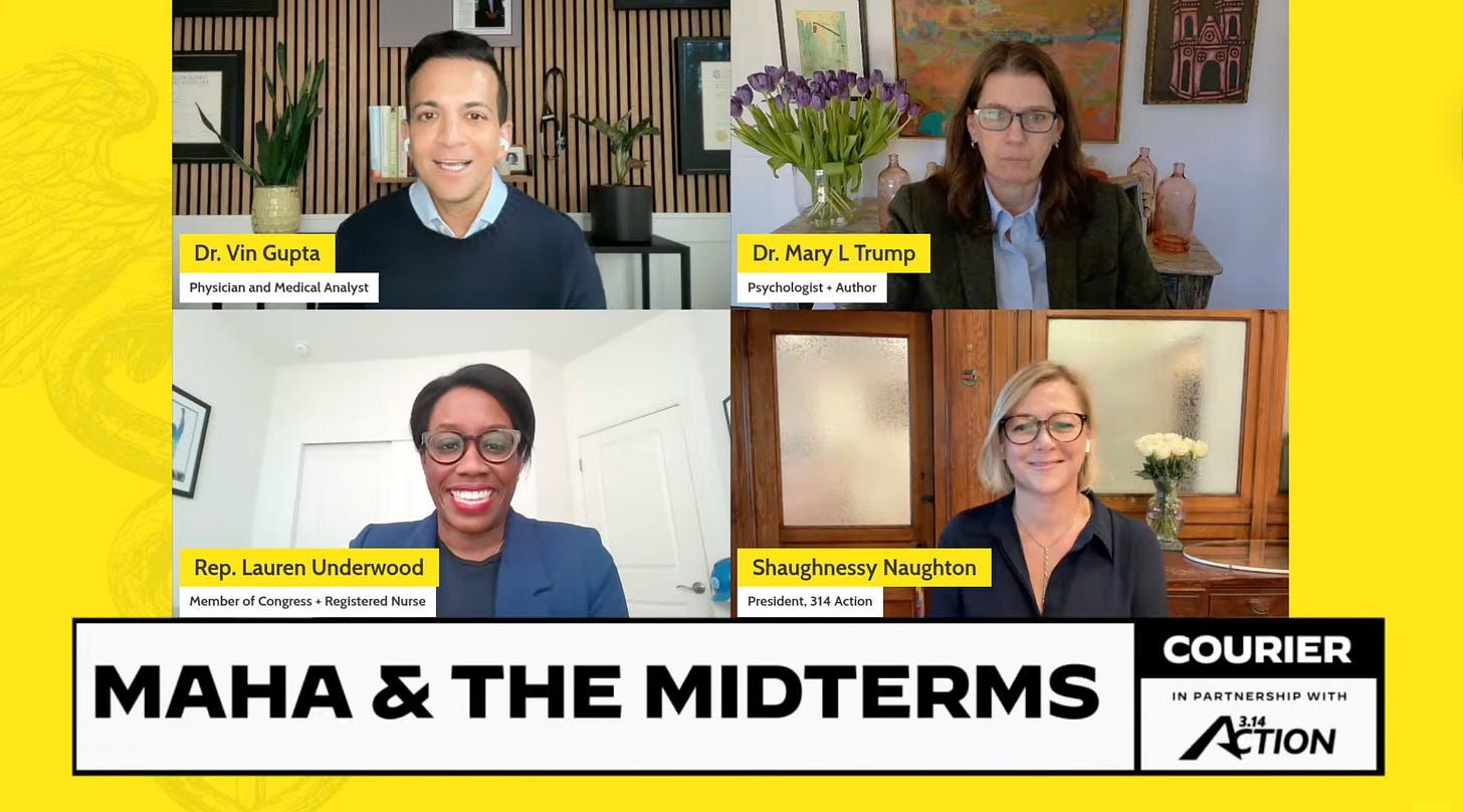 Last week, COURIER’s virtual event in partnership with 3.14 Action drew 22K+ live viewers across platforms. The event featured Hank Green, Dr. Mary Trump, Representative Lauren Underwood, Shaughnessy Naughton, and Dr. Vin Gupta discussing how misinformation and policy decisions affect healthcare access and costs in the U.S. Missed it? Watch the full replay on YouTube.